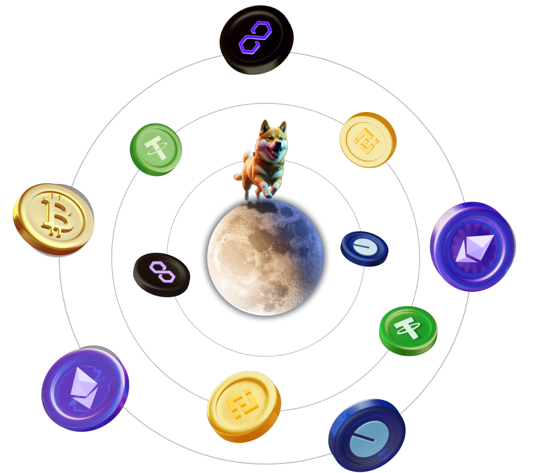 Spawned by a collapsing supernova, Cosmo the Doge was born with the unique ability to hyperjump between the stars of the crypto universe. His time-tested voyages across Ethereum and Solana transformed the Doge Meme into a symbol of unity and creativity, giving rise to the Dogeverse. Now, Cosmo has discovered a way to share his chain-traveling ability so that $DOGEVERSE holders can freely traverse the best crypto chains. What a good boy.